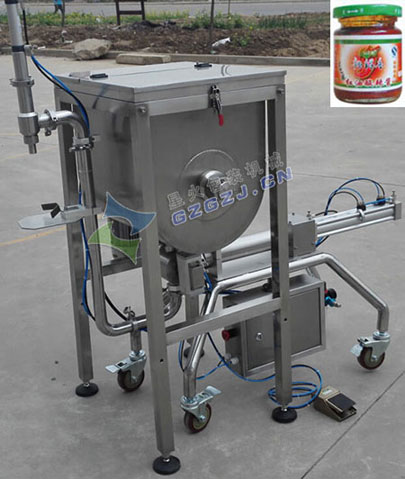 图中所展示的是宁乡灌装机力荐卧式搅拌颗粒酱料灌装机,本颗粒酱状半自动灌装机是星火公司更新研制的,主要针对该机专门针对油料分离较快,立式搅拌不能解决的的颗粒酱类物料的灌装,如牛肉酱、香辣酱、豆辨酱、鲜辣酱、豆豉及郫县豆酱等酱类灌装. 本机采用微机(PLC)控制,具有生产效率高、计量准确等特点。是粘稠酱料产品,尤其是带有颗粒的酱料更理想的灌装机,在社会不断进步的过程中,我们的这种设备也在努力发挥自己的优势,不甘落后,不断的突破在技术上的不足 灌装机会发展的更好。